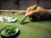 步驟三: 鋪草皮,該草皮是紙做的所以要用白膠黏貼已免紙張會變形凹凸,貼好後需放8小時陰乾再用邊框 壓住草皮。(88.02.11)